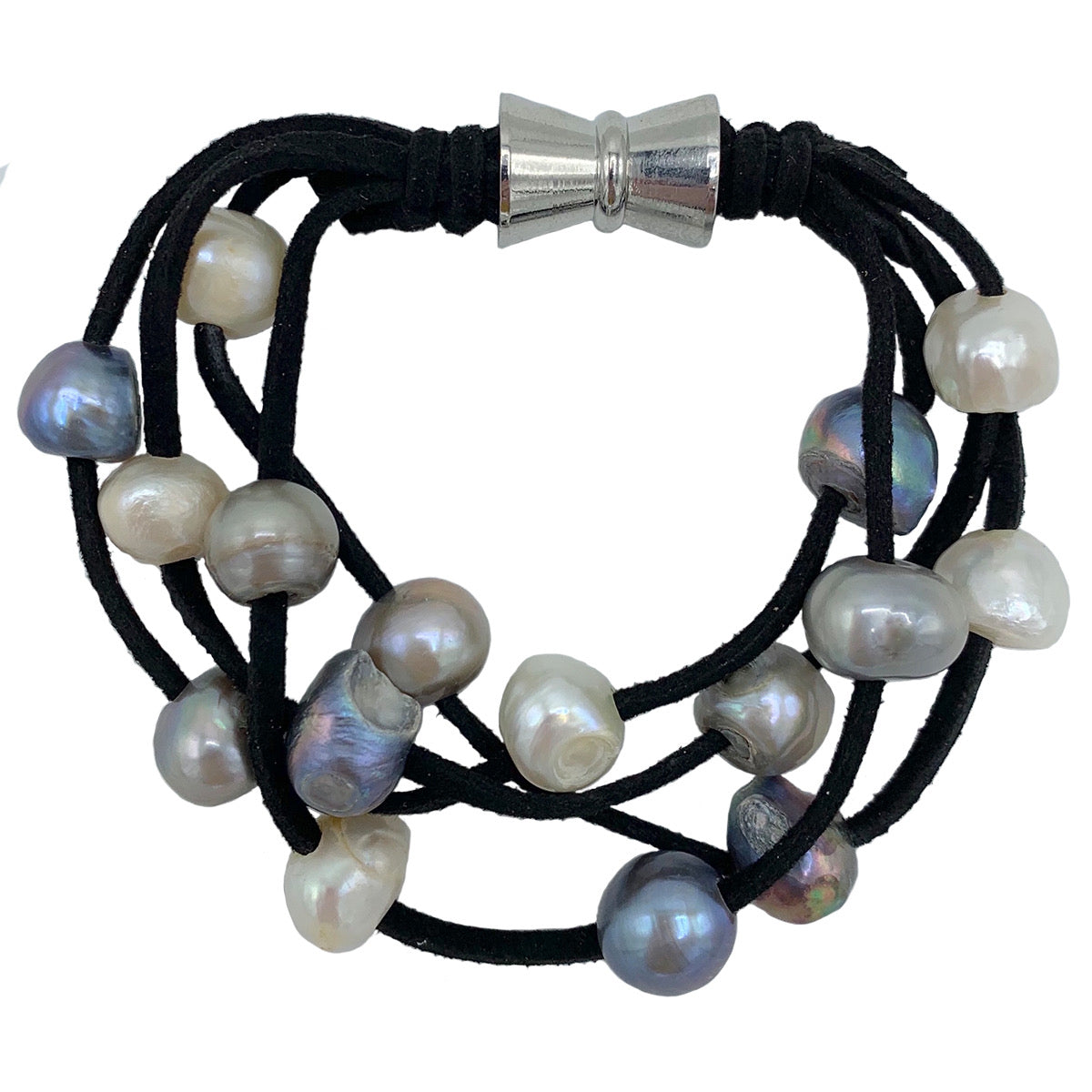 4-strand Freshwater Cultured Multi Color Bam Bam Bracelet on Black Vegan Suede w/ Rhodium Plated Stainless Steel Magnetic Closure. Matching Necklace Available.